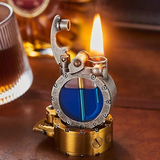 Vintage Lighter, Kerosene Liquid, with Visible Gas Tank, refillable, Suitable for Collection, Gift