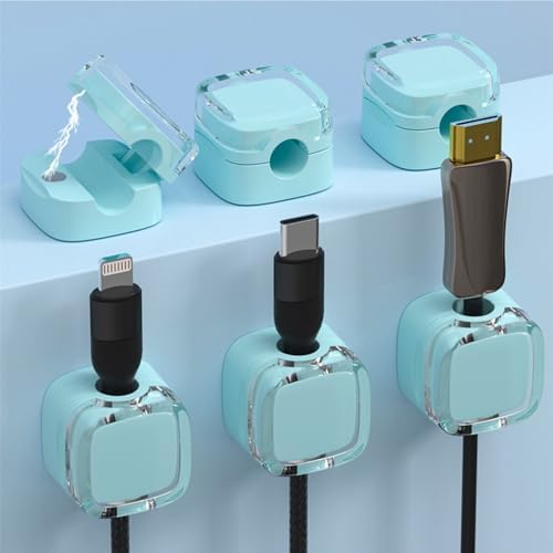 - 【Support Most Wires】The slot hole of the desk cable clip is 7.7mm in diameter. Suitable for most cables such as keyboard cables, mouse cables, phone charging cables, USB cables, HDMI cables, VGA cables, computer power cables, plug board power cables, and charging data cables for other electronic devices. Magnetic cord organizer size: 0.91×0.87×0.65 in/2.32×2.2×1.65 cm.